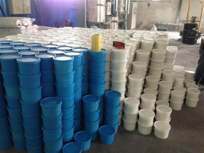 雙組份聚硫密封膠A組份為桶裝白色膏狀,B組份為瓶裝液體固化劑,(為方便施工方對顏料要求,顏色單獨盒裝,一合一組)。使用時將B組份液體全部擠入A組份桶內(nèi),按施工顏色要求放入顏料,迅速上下攪拌至均勻。用小鏟將混合好的密封膠抹入待施工的部位。48小時后即可浸水和水接觸。